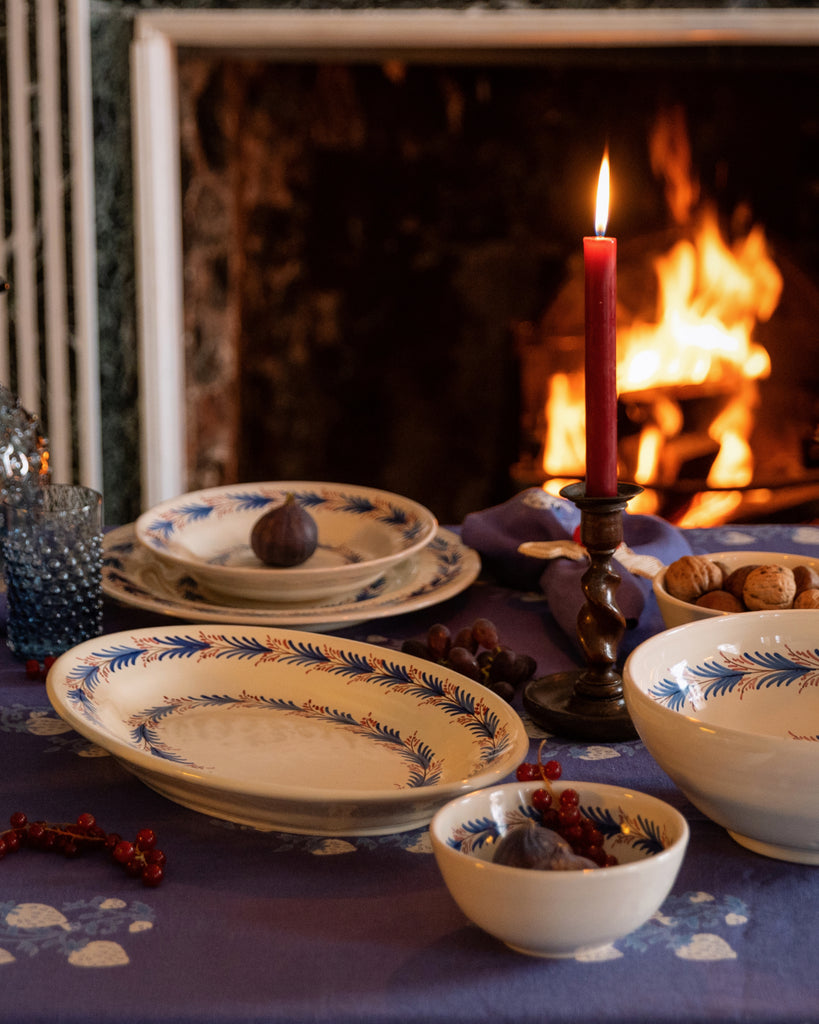 A beautiful hand-painted serving platter, this one is for entertaining in style! A truly elegant centrepiece for any table, pair your Heather oval dish with our Honor large bowl and pink Vine tablecloth. Available in two colourways: Blue & Pink, or Pink & Tan.