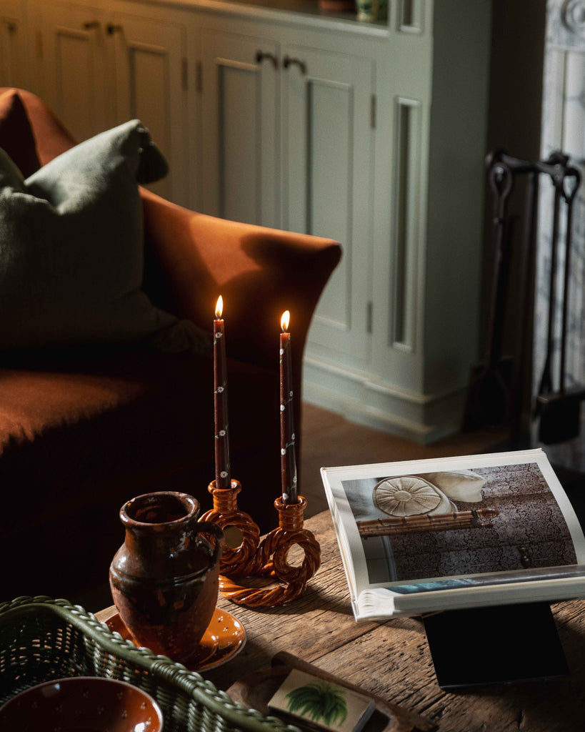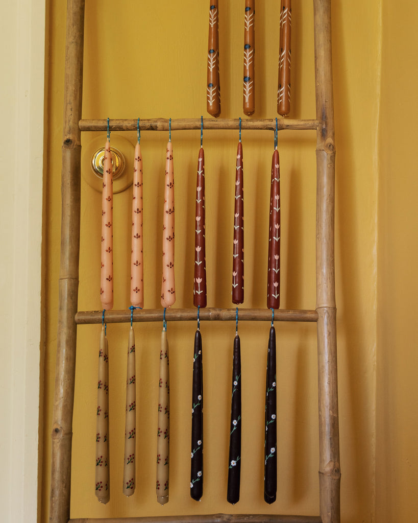 A pair of beautiful, limited edition taper dinner candles, hand-painted by artist Connie Williams-Thomas. Choose from our five pretty designs: Petal Blush, Summer Cornflower, Ochre Tulip, Daisy Chain and Festive Berries. The perfect gift, these candles make the most charming addition to your dinner table or living room.