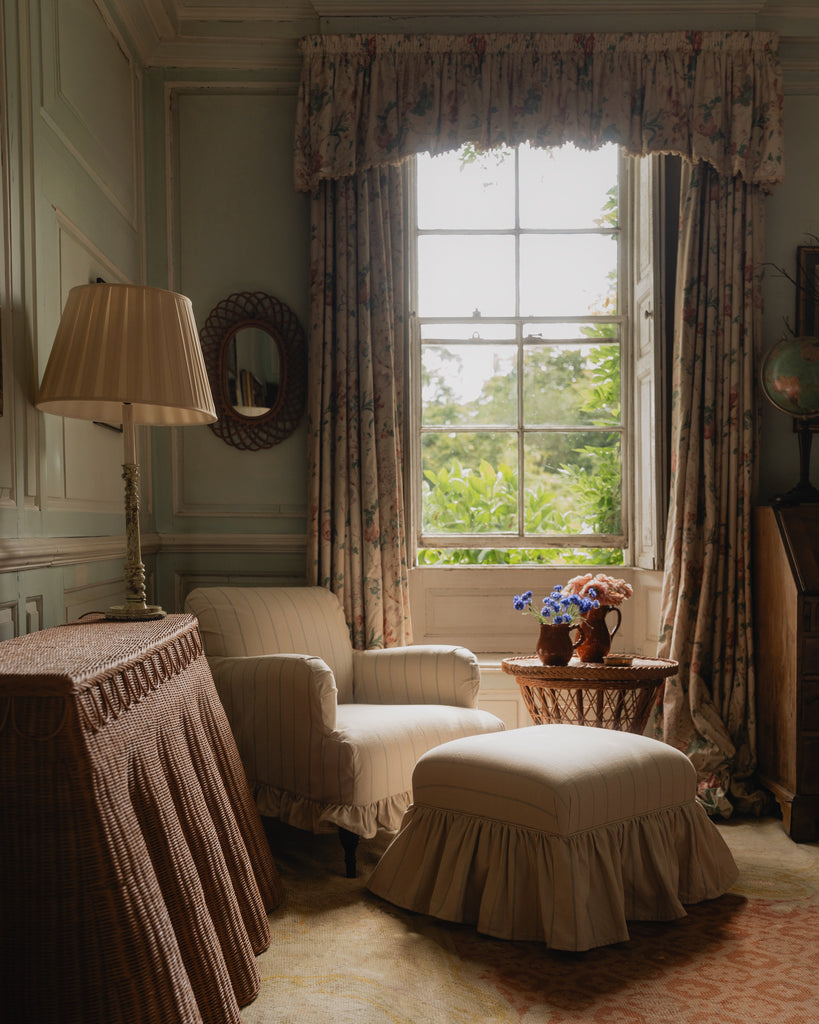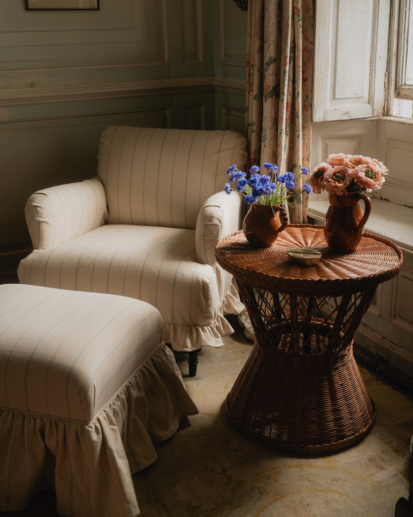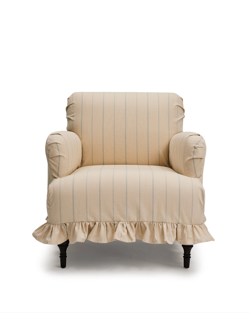Welcome home! Our skirted Bronte armchair will become the cosiest spot in the house to sit back and relax. Featuring elegant rolled arms and a ruffled skirt in a loose cover, choose from seven linen shades to cover your piece. Handmade by our heritage furniture workshop in North America, the upholstered collection exhibits exquisite detail and craftsmanship.