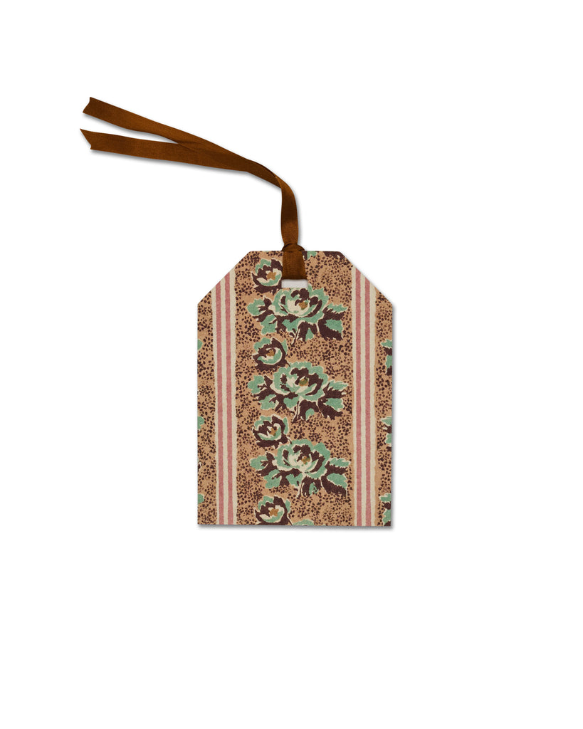 Each set includes 6 tags & 6 adhesive labels in mixed designs, featuring silk ribbon ties in butterscotch & caramel. The set is presented in a charming labelled pochette.