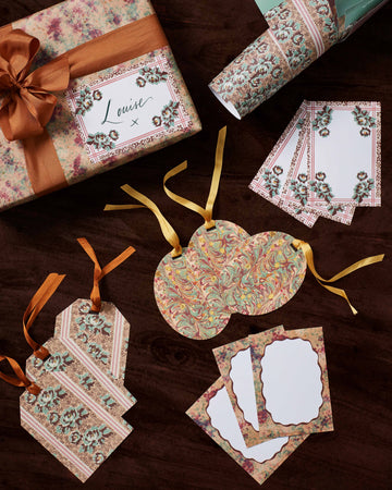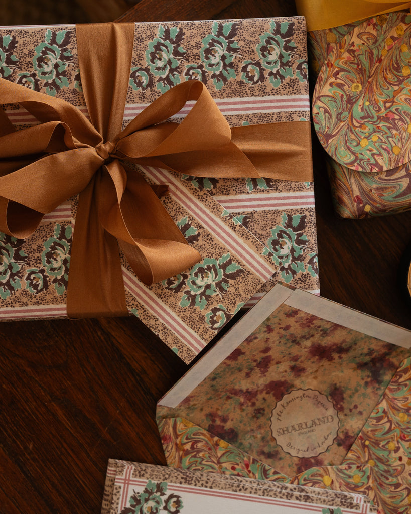 We are thrilled to present our limited edition stationery collection with The Kensington Paperie. Both Sharland England & TKP's founders have been friends for decades, coming together to create beautiful items, from wrapping paper & silk ribbon, to thank you notes, gift tags & bags. Designed and printed in England, this elegant gift tag & adhesive label set make the perfect companion to our wrapping paper.