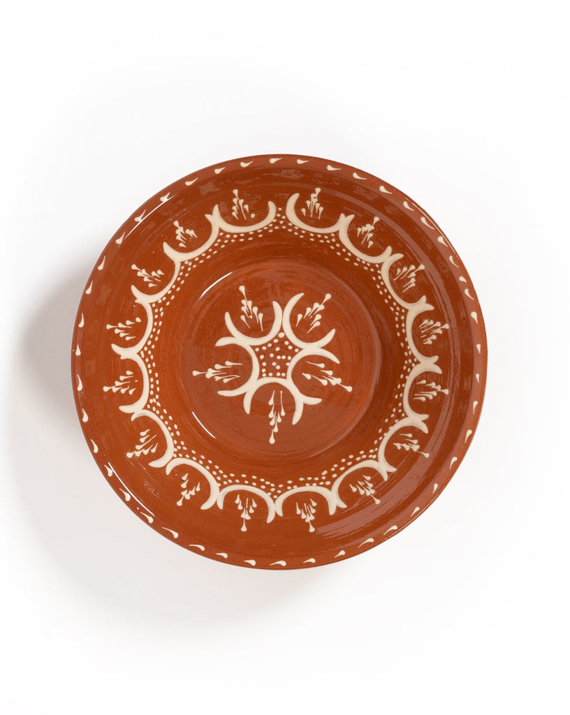 A large rustic bowl handmade and hand-painted in rural Spain, using traditional techniques. The Pintora large bowl features a dusky pink decoration on an ivory background, adding a rich dose of colour to any tablescape. Size-wise, it's perfect as a pasta bowl for one, or as a family-style sharing dish for salad and vegetables.